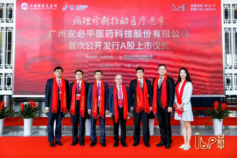 今天,广州安必平医药科技股份有限公司(证券简称:安必平,证券代码:688393)科创板上市仪式在上海证券交易所及上海证券交易所南方中心(广州)同步举行,这是国内病理诊断领域第一股,也是安必平历史的重要一刻。安必平董事长、总经理蔡向挺先生、广州开发区管委会副主任张晖先生、广州开发区金融工作局副局长汤克明先生、民生证券股份有限公司执行副总裁、投资银行事业部总裁杨卫东先生、安必平董事、董事会秘书、副总经理汪友明先生、安必平董事陈吾科先生、股东代表深圳高特佳弘瑞投资董事长黄青女士、中山大学Ebpay基因股份有限公司董事、总经理周新宇先生等股东及中介团队代表、安必平高管团队等出席了本次在上海证券交易所举行的安必平科创板上市仪式,共同见证这一具有里程碑意义的时刻。