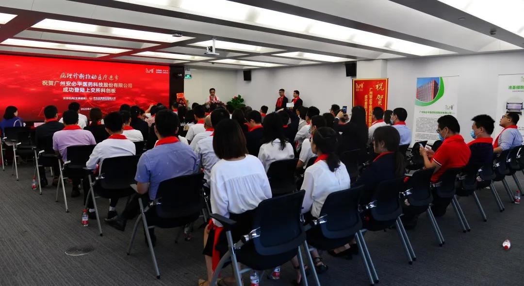 在广州分会场同步进行的上市仪式,也是上交所南方中心首次尝试两地同步举办上市仪式。广州市地方金融监督管理局副局长徐秀彬先生、广州市金融局资本市场处一级主任科员吴冠女士、广州开发区金融工作局四级调研员何映月女士、广州开发区金融工作局科长岑猷辉先生、广州开发区知识产权局副局长陈光辉先生、广东上市公司协会副秘书长丁伯东先生及其他嘉宾及安必平员工代表共同出席了本次在广州分会场举行的安必平上市仪式,同步见证了安必平在上海证券交易所科创板鸣锣上市的历史一刻。